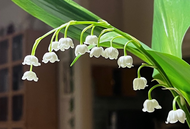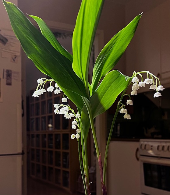 På linnesuppsala.se, kan jag läsa:” Den ljuva liljekonvaljen är en ovanlig och ganska hemlighetsfull sort. Den känns lätt igen på sina gröna blad och sina skira vita klockor. Den är en självständig, omtänksam och komplex individ som helst trivs i skuggiga skogsbryn och blommar ut i den vackraste sommaren, strax efter fruktträden”, skrev Linné 1755.