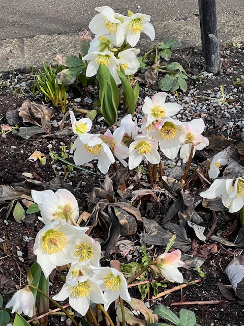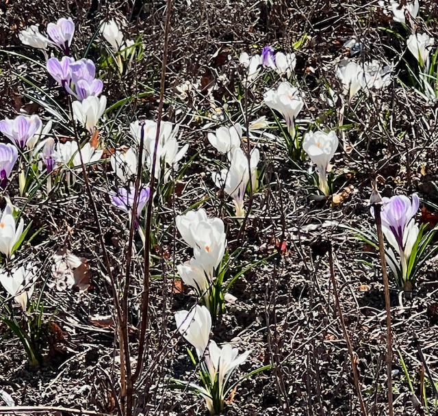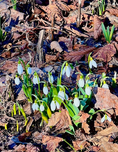 Snödroppar bland höstlöven i Suseboparkens rabatter 17 mars