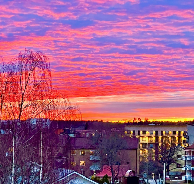 Solnedgång från balkongen 21 mars kl 18.18