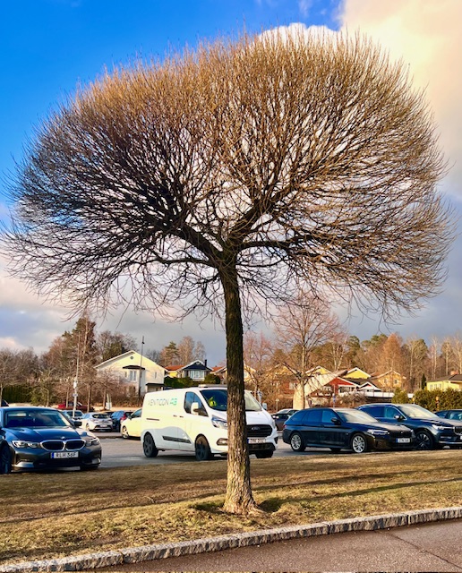 En sälgsläkting har fått växa upp och bli träd med lite märkliga grenar.