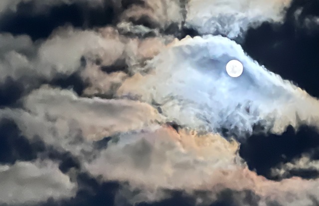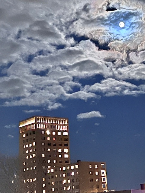 Påsken närmar sig, det är nästan fullmåne, utsikt från köksfönstret 31 mars kl 21.02.