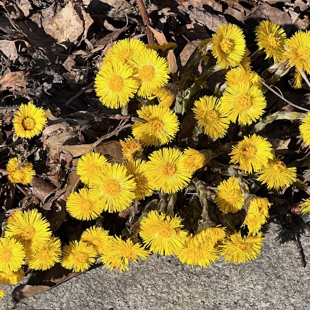 Stenen med de gula lavarna står vid en av stigarna in till Elisparken i Upplands Väsby, jag har försökt hitta namnet på lavarna och det närmaste jag kommer är vägglav (Xanthoria). Den är klargul och sitter tätt mot stenen och jag läser att den förekommer på trädstammar och väggar förutom sten och havsklippor och den är vanlig i hela Sverige utom längst i norr.