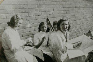 En liten bit in i parken var en samling militärer förlagda, de var tilltänkta officerare, vet inte mer, men de utövade stor dragningskraft på flickorna om kvällarna och det var förbjudet för flickorna att gå dit. Området var inhägnat och hade en vakt vid entrén men flickorna visste var man kunde krypa under stängslet och ta sig in ändå och väl där inne kunde flicklägrets ledare inte nå dem och det idkades umgänge. Den som basade för killarna var något äldre och han hade tjing på yngsta flickan. Hon var lite nervös när de drog iväg om kvällarna och sa:” jag måste vara lite försiktig eftersom jag inte fyllt 14 och kommer dom på oss så går det illa för honom. När de dök upp frampå natten efter utflykten var det mycket snack och utbyte av jämförelser, vi låg i logement med våningssängar och alla var samlade i två stora salar utan dörr emellan, så det gick inte att undgå att höra vad som varit. Jag kände mej ganska efterbliven men som väl var fanns det några flickor till som låg hemma och försökte sova. Det hade kommit två flyktingar efter mej och den ena grät när vi skulle plocka krusbär för hon skulle bli violinist och fick inte skada fingrarna.