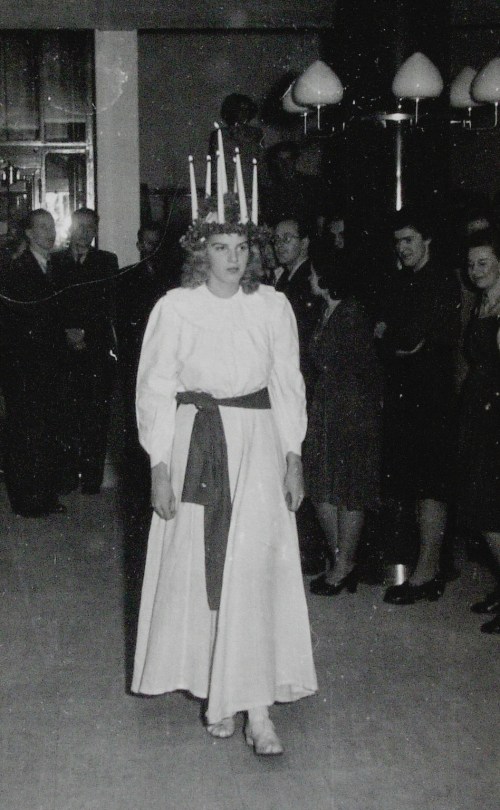 Ingvor var scout på fritiden och utövande sådan och det var även Bengt Carlsson, STI:are från en annan avdelning. De hämtade rörelsehindrade personer på Eugeniahemmet och for med dem ut i naturen på helgerna, de kunde bara klara ett visst antal per gång så det blev i stället många söndagar. Ingen hade då egna barn, så tiden räckte.          Ingvor som Lucia 1947.
