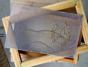 Vattenmärke för ett par somrar på Fjäderholmarna. Nät med vattenmärke för Trollsländans Textilverkstad