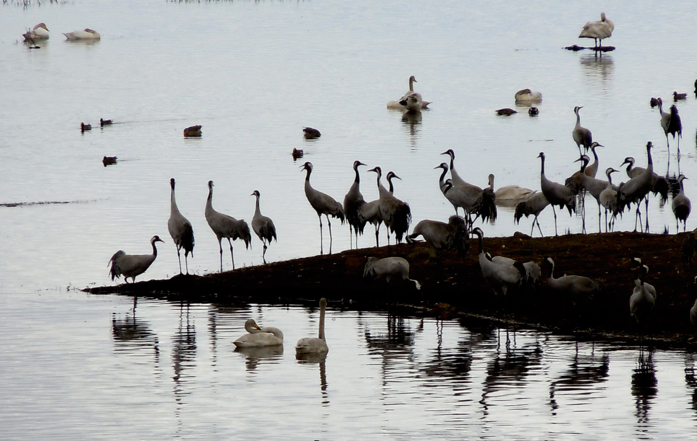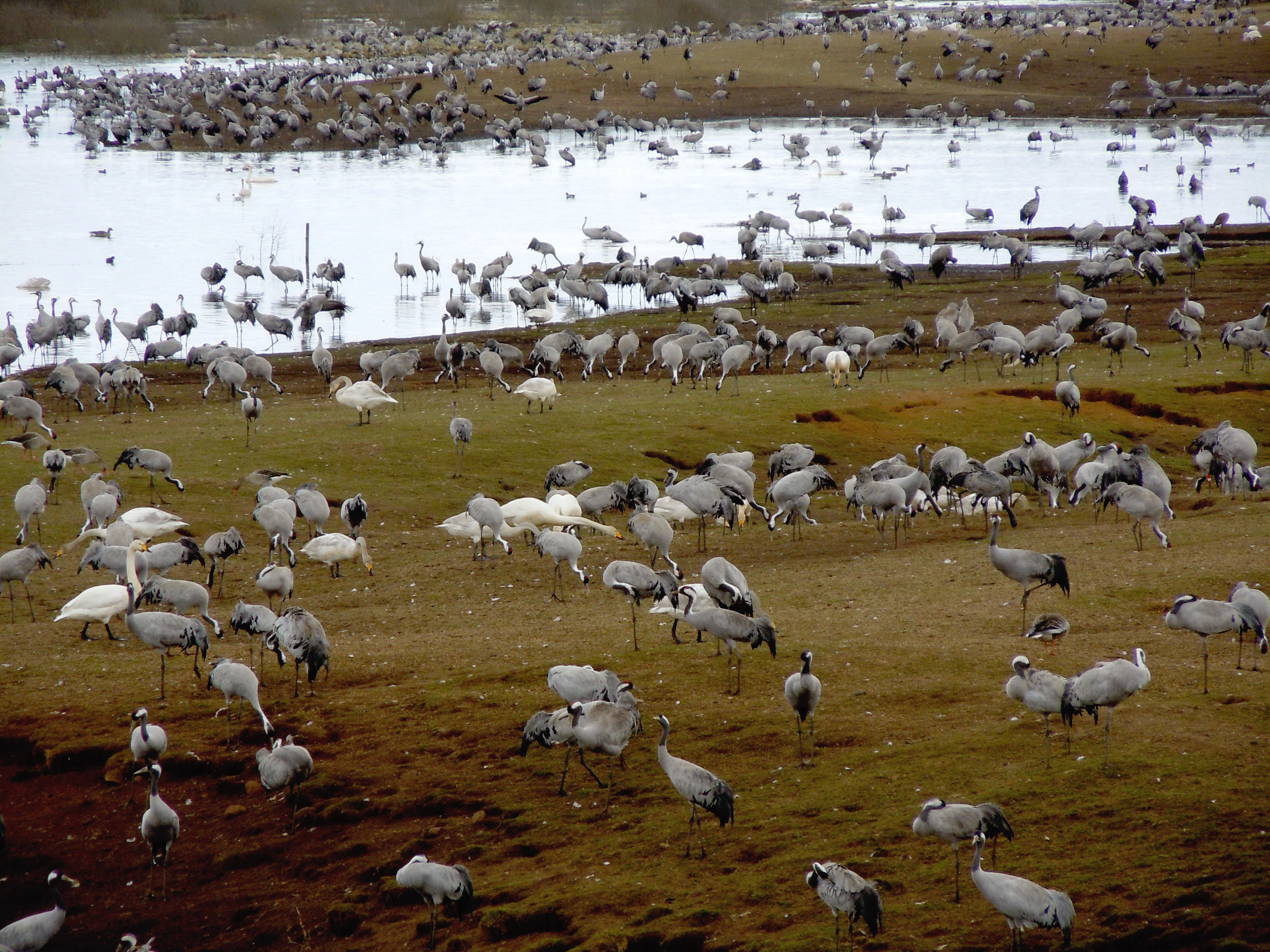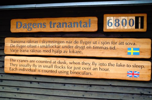 En skylt på turistpaviljongen angav dagens antal tranor till 6800 och hur det går till när man räknar dem förblir för oss en gåta. Det var svårt att lämna platsen för bilden ändrade sej hela tiden.