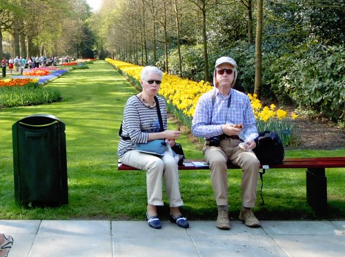 Det visade sej vara precis lika svårt att hitta från Keukenhof som till men efter ett antal vändor var vi tillbaks på hotellet. Lasse drabbades tyvärr av diarré och åt från och med nu enbart rostat bröd och drack te. Det blev inga gourmetmiddagar för ensam kan man inte sitta och njuta när den andre går på vatten och bröd. Vi hade nått målet för resan, de starka färgerna dansade runt i huvudet och vi orkade inte tänka på att fortsätta mot Medelhavet (hade vi nog inte tänkt heller), nu gällde det att ta sej hem igen.