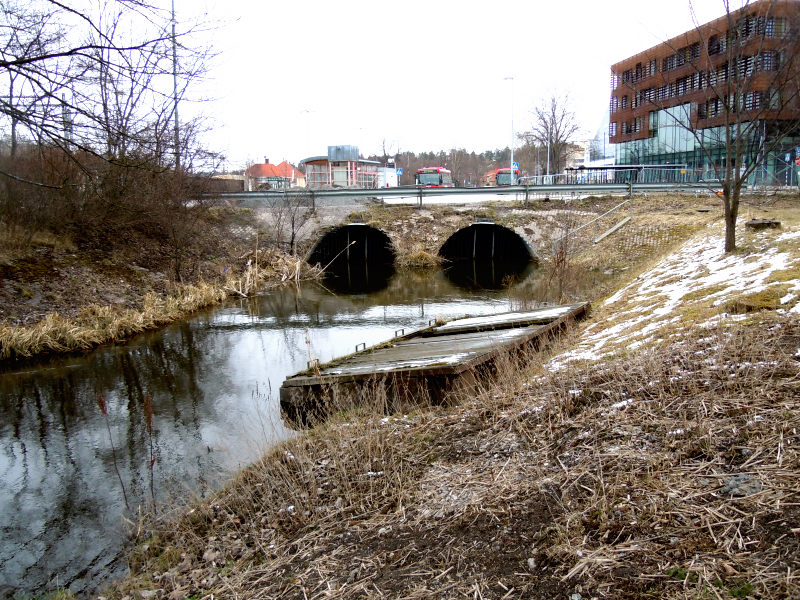Något mer kan väl nämnas t.ex. de gamla brofundamenten som ännu är synliga innan den gröna vassen döljer dem. När man gått under Mälarvägsviadukten och kollat bävergnaget går man över en gångbro och får ån på vänster sida.