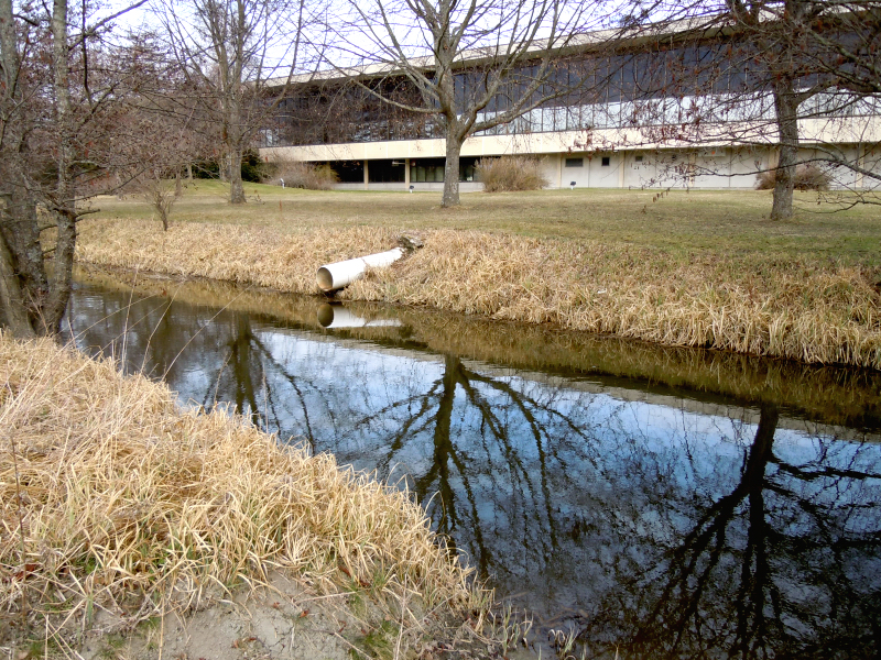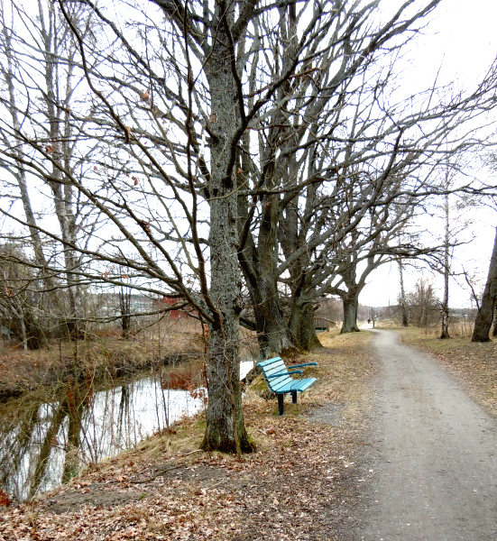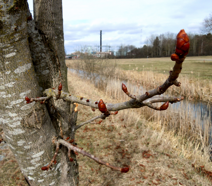 Väsbyån rinner nästan spikrak förbi Marabou (Kraft food) och i kommunens vattenplan från 2007 kan man läsa att den tidigare rann i mjuka meandrar, men av olika anledningar har man grävt den rak. En målsättning är dock att få tillbaks lite böjningar. Mitt för den långa fabriksbyggnaden men på kommunens sida om ån har man planterat kastanjer, de är lite känsliga och lyckas inte alltid bli kvar. Här är åtta träd med svällande knoppar och det ser ut som om de varit fler från början men ingen har fyllt på där det blivit lucka. Vem planterade träden, var det kanske Marabou som ville skapa en grön slöja framför utsikten över järnvägen eller är de ett led i kommunens satsning?