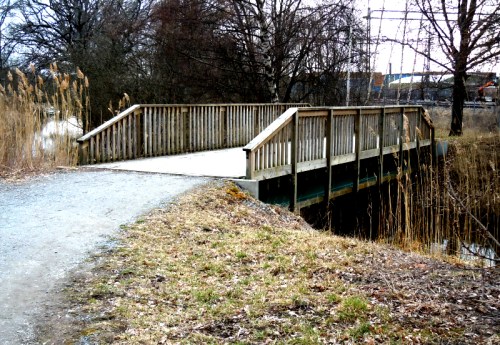 Spången under järnvägen är nybyggd och kanske början till att göra en väg så man kan följa Väsbyån till Edssjön. Man kan ta sej dit redan nu men det är inte för alla (ej lämpligt för barnvagnar och rullatorer).