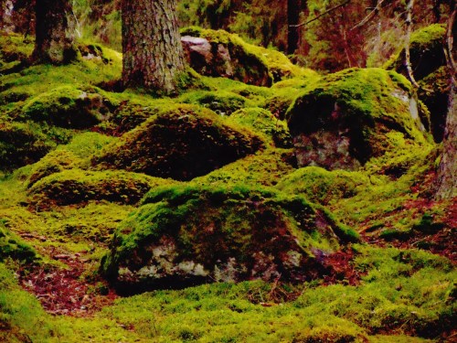 Gick ut i skogen för att hitta något grönt att vila ögonen på. Det var redan lite skumt ute så ljuset räckte knappt.