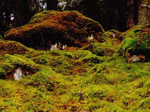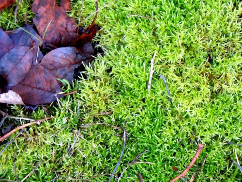 Mossan är grön, kyla och regn brukar vara tillväxtväder för mossor och lavar men det såg ändå tunnt ut.