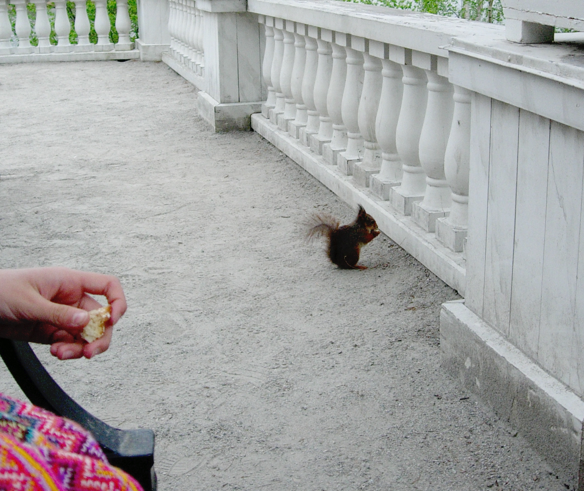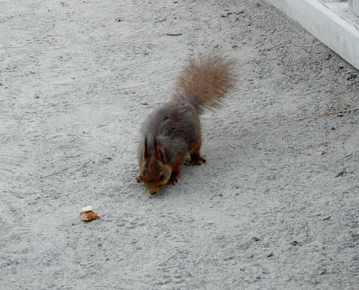 Den där matglada ekorren fick mig att tänka på en gång när ett helt gäng fåglar, däribland en större hackspett (!) följde efter mig genom halva Bergianska och tiggde mat.