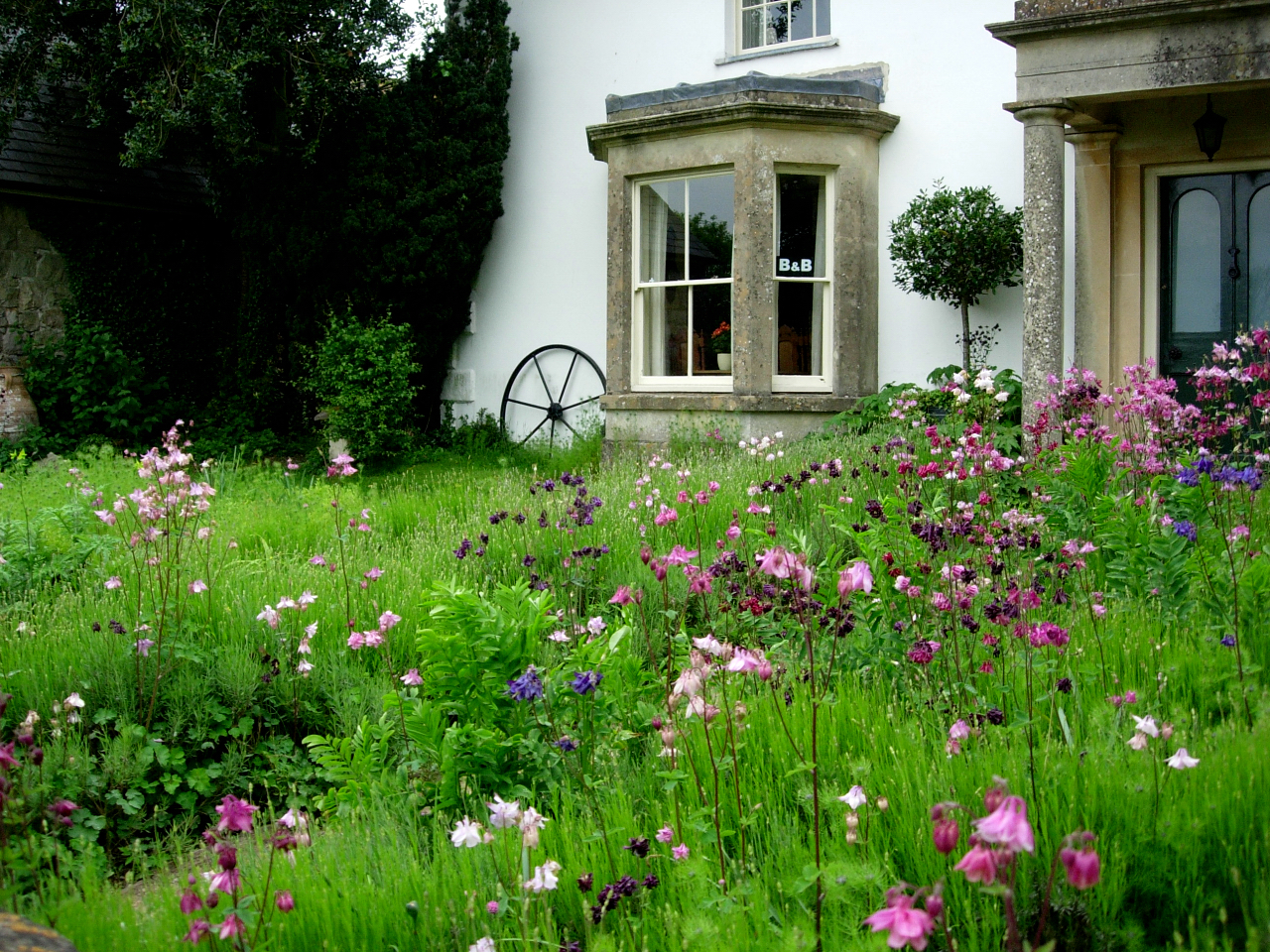 Ett par hus med bed and breakfast hade helt paradisiska mattor med aklejor i alla färgnyanser framför dörrarna.