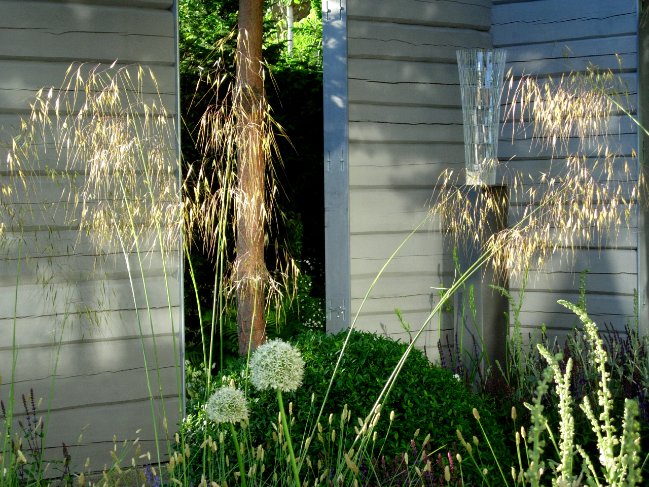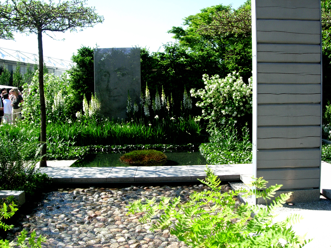 För första gången hade en svensk landskapsarkitekt Ulf Nordfjell deltagit med en utställning som tävlade med en rad kända och garvade kreatörer om medaljer för sin konst. A Tribute to Linnaeus kallade han sin komposition, det var ju Linnéår och Nordfjell hade skapat något som i alla delar skulle anknyta till Linné. Därför blev mitt intresse för hans skapelse lite större än för alla de övriga (helt fantastiska) installationerna.  Linné är känd i England och Nordfjell fick en guldmedalj, men det är inte som i en sport med bara tre medaljer, guldmedaljerna är här flera än en.