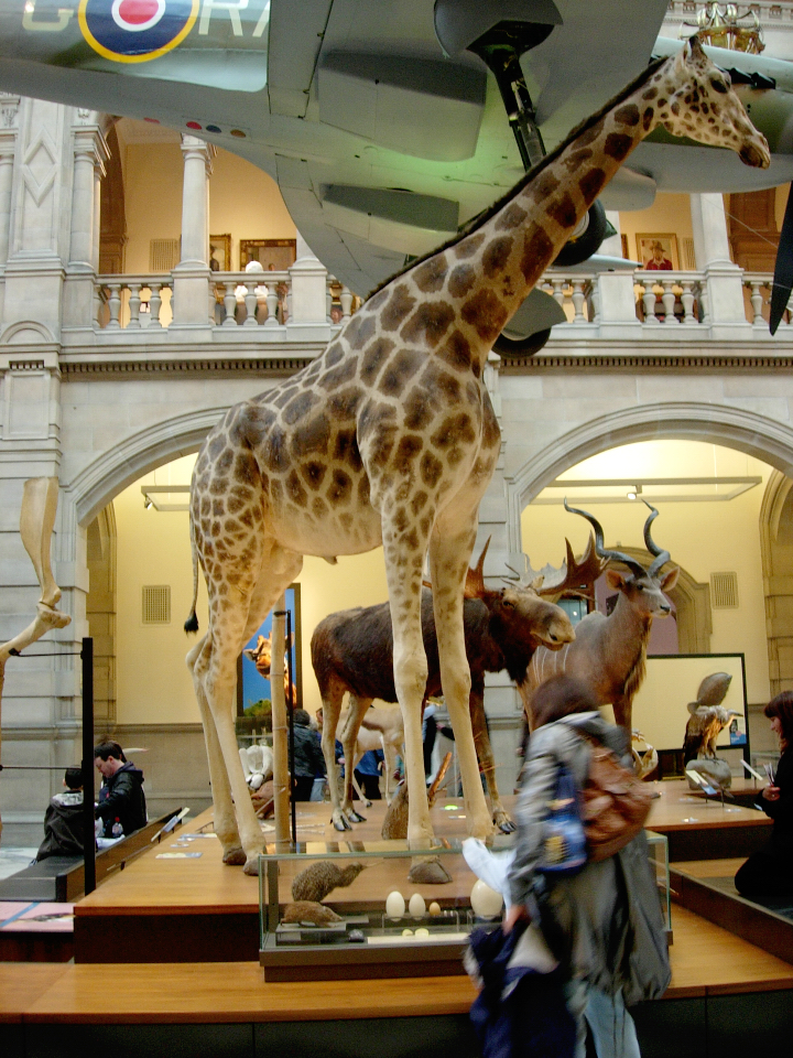 Ni måste se Kelvingrove Art Gallery and Museum om ni är i Glasgow sa Fred och dit gick vi dagen därpå. När vi kom in i den stora hallen drog vi andan och sa, vad i all sin dar är det här? Ett flygplan, en Spitfire hängde från taket och uppstoppade afrikanska djur stod på golvet och montrar i en enda röra utan synligt sammanhang.