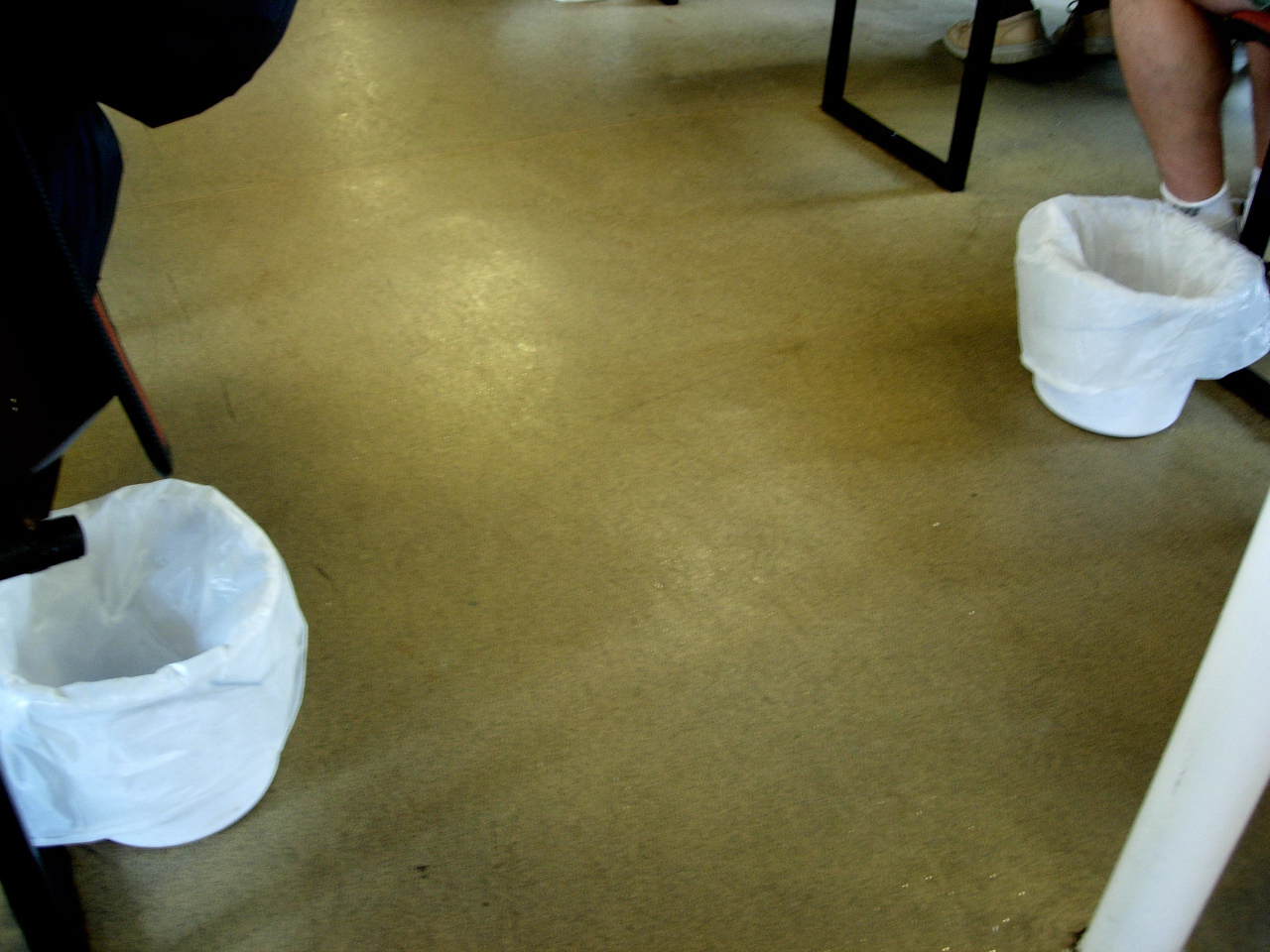Det var lång kö till färjan , vi gick ombord och det var fint och städat, man var ordningsam och ville tydligen inte ha skräp på golvet för det var väldigt många hinkar med vita plastsäckar utplacerade överallt…