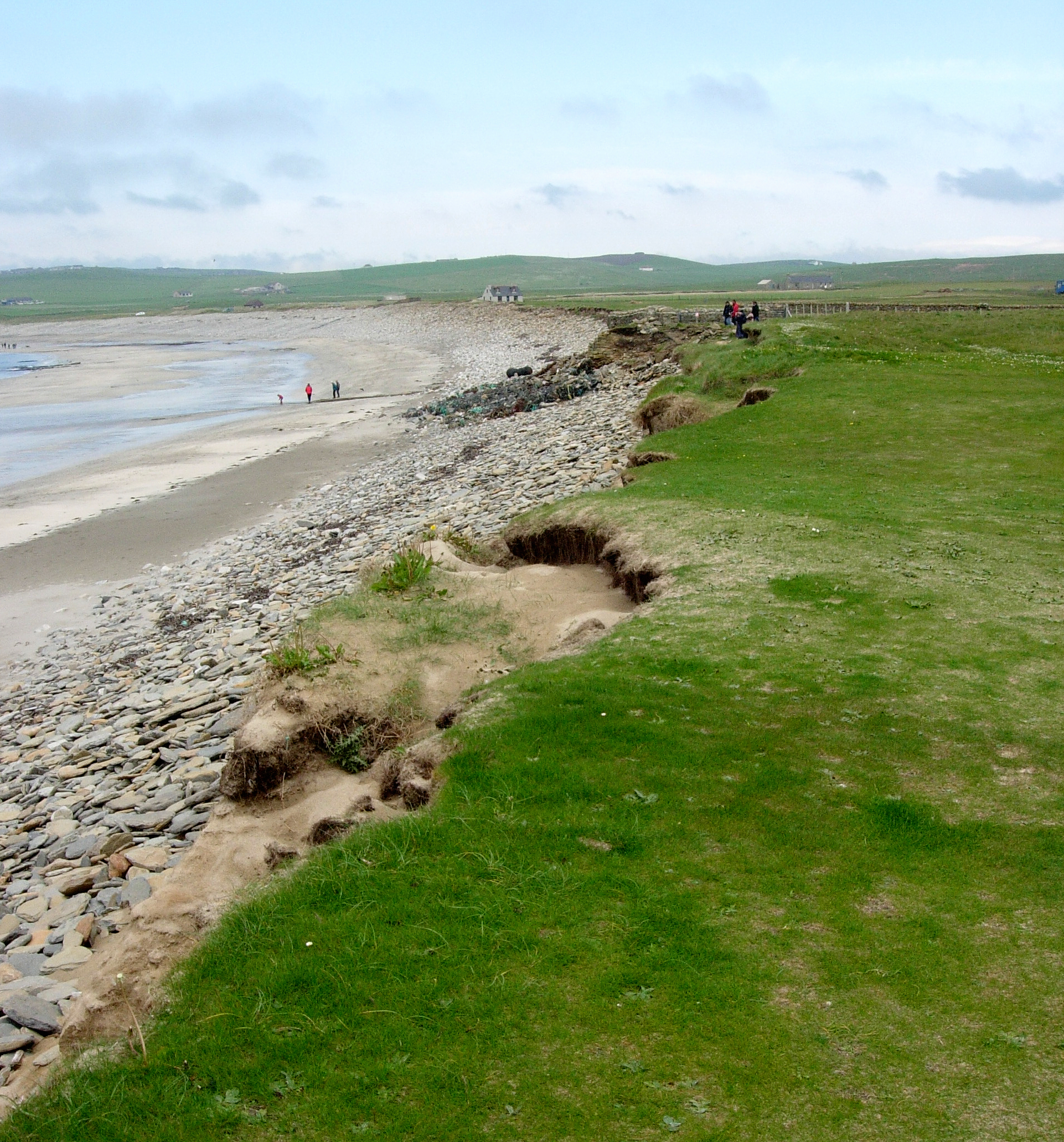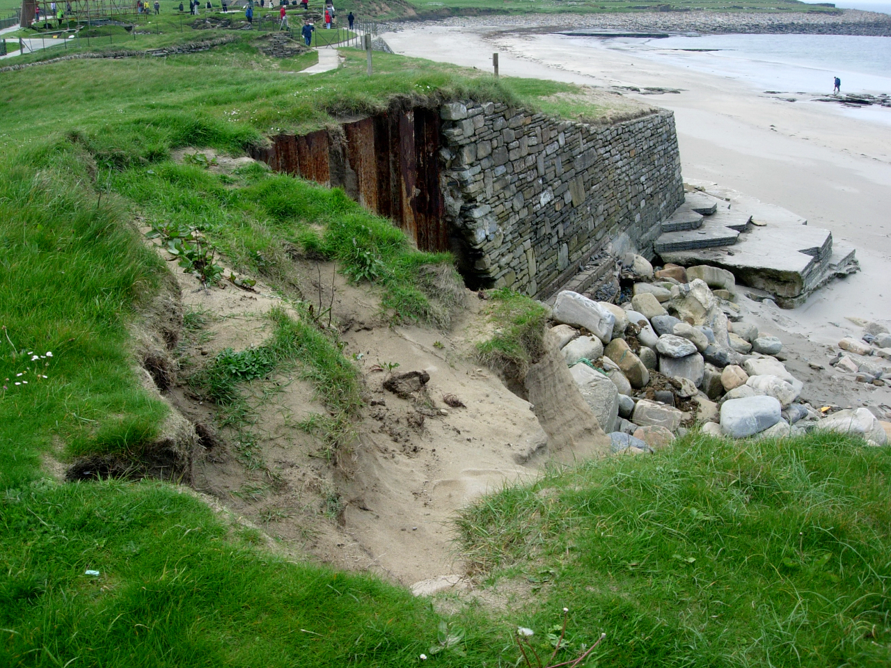 Havet gnager sanden och stödmurar som byggts för att hålla kvar sanden är klena när havet ligger på.