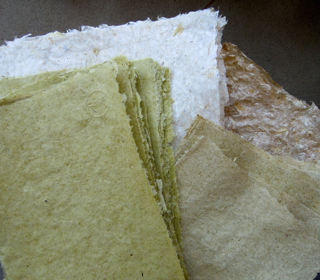 Sen kommer frågan när jag står där med en pappersbunt, vad ska man ha det  till ?  Den svenskaste av alla frågor, som inte ens Nobelpristagarna undgår. Konstnärer vet och frågar inte men till den som frågar kan man bara säja, här öppnar sej friheten, man får göra precis vad man vill och vill man inte så räcker det med att bara vila ögonen på papperet. Vägen till papper är inte som ett matrecept som leder till något ätbart, det leder vidare. Man kan vika en trana, skriva ner roliga historier på det och binda till en unik bok som de efterlevande kan hitta och få sej ett gott skratt av. Haikuer med fina vinjetter är inte heller fel. Om det inte är för ojämnt kan det passera för utskrift i datorn, då röjer man inte sin handstil. Posten befordrar även brev av vass och annat råmaterial, frimärken fäster och texten kan bli oförglömlig osv osv. Men framför allt ger det en vink om att det finns fler och energisnålare  källor  till cellulosa än trä.