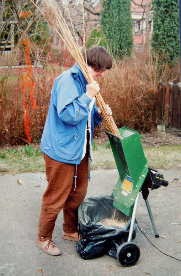 Ut till Edssjön ännu en gång, den har växt igen ännu mer sen sist och vassen håller på att slå ut sina violettbruna flaggor och jag har sekatören med. Klipper en lagom bunt och hoppas kunna ta mej hem utan att möta någon som häpnar. I stället för att mala vassen i kompostkvarn klipper jag den i bitar med sax och fyller syltkitteln. På med vatten och koka ett tag och sen på med kaustik soda i lagom mängd och det får koka en timme eller två. Silar av kokspadet och använder det till nästa fiberkok, tvättar vassfibrerna och kör en omgång i mixern för att se om de är lagom upplösta.