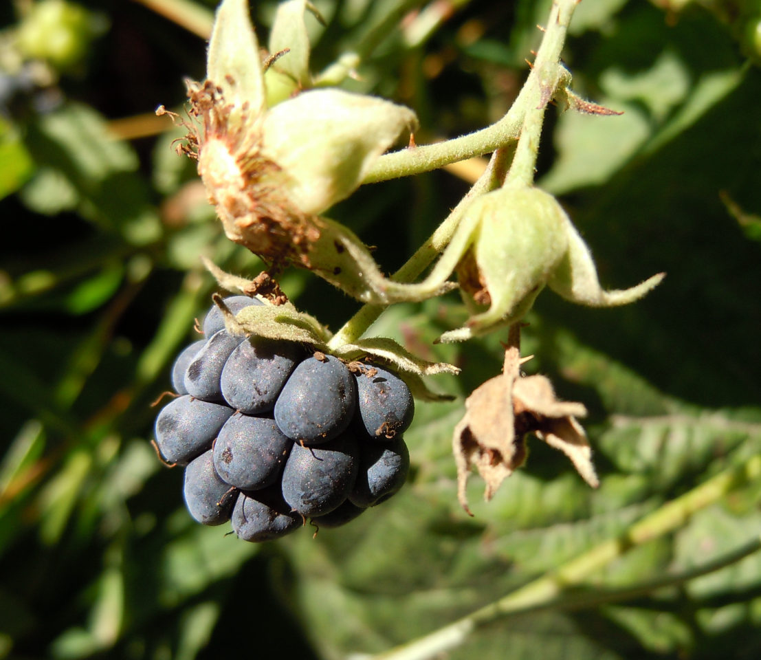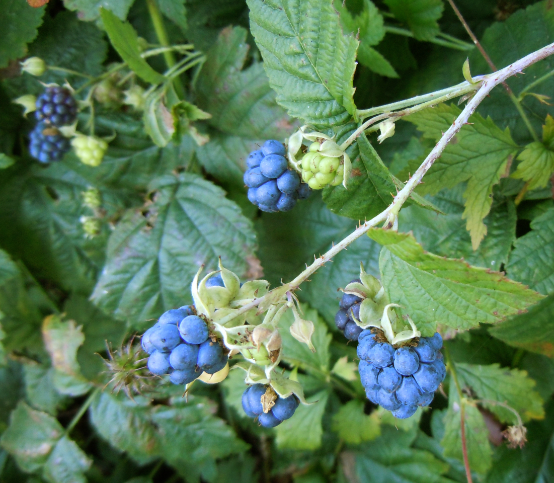 Salmbär är bäret som bara finns på Gotland, hittar man det på fastlandet så heter det Blåhallon Rubus caesium. Och varför salmbär? För något år sedan läste jag att det hetat Salomonbär en gång men nu hittar jag inte uppgiften. Trodde att bären kanske mognade lagom till Salomon dagen men en titt i almanackan säger att Salomon är 25 juni, alltså kring äldre midsommar, så där rök den förklaringen.