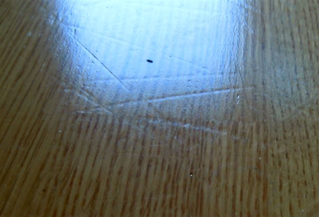 Reporna vi gjort i det nya fina parkettgolvet (8 år) genom att tappa allt från kastrullock till blomkrukor och dra stolar härs och tvärs, ser ut som djupa diken, det här blir dyrt den dag vi lämnar lägenheten.