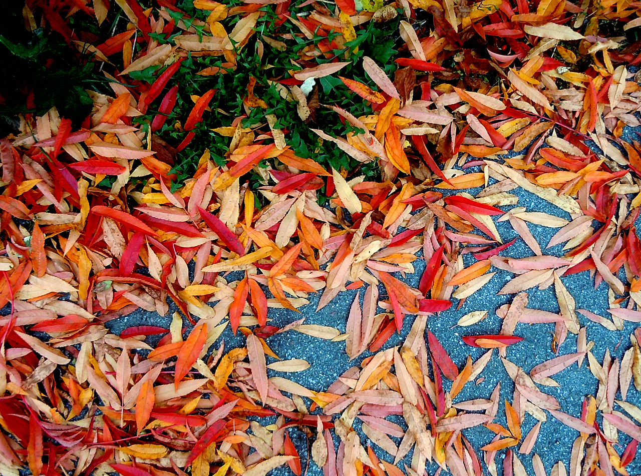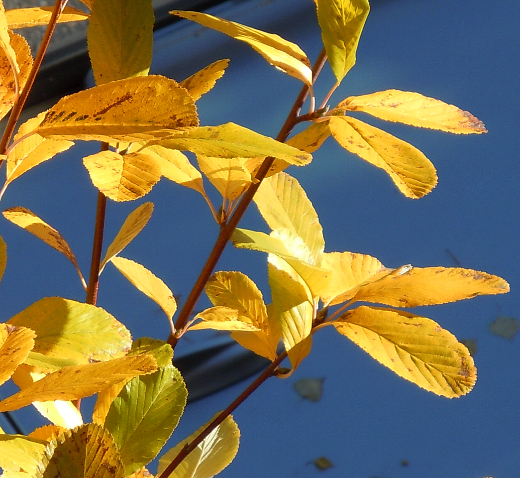 En del av oxlarna utmed vår gata går från grönt till knallgult men inte alla, vissa påminner om de vilda oxlarna, löven bara torkar brunt och faller.