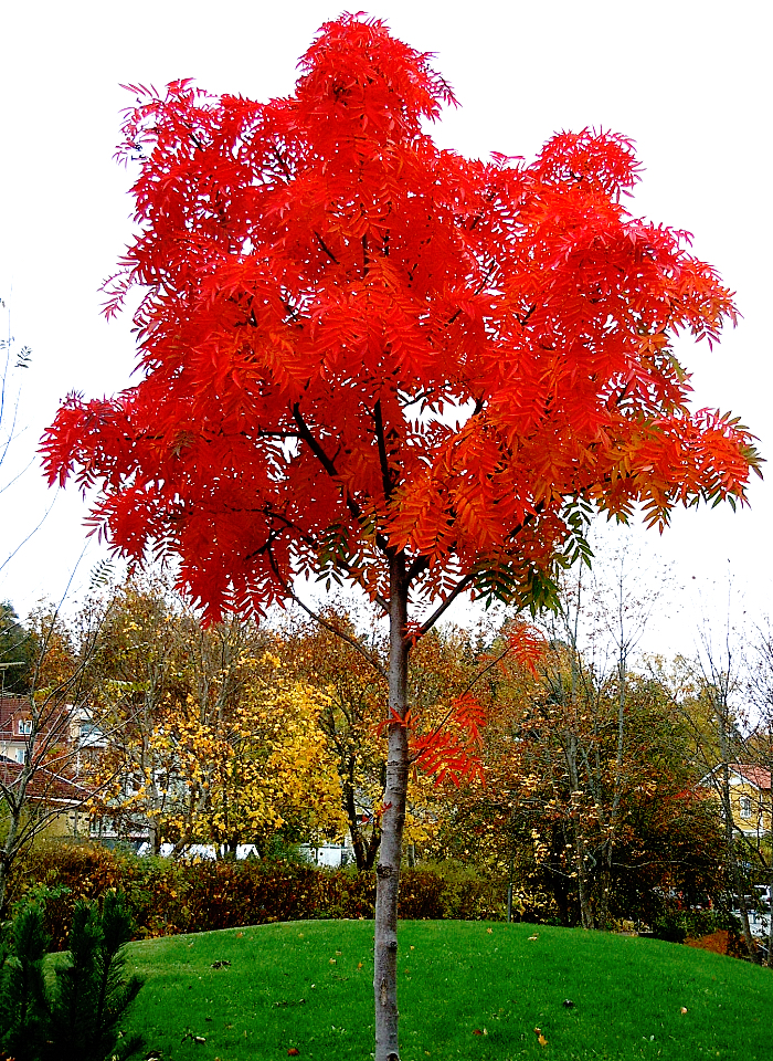 Ja visst är det en fantastisk färg, undrar om de här rönnarna är extra mycket röda i år. De hör i alla fall till det roligaste i trädväg de har planterat här de senaste åtta åren.