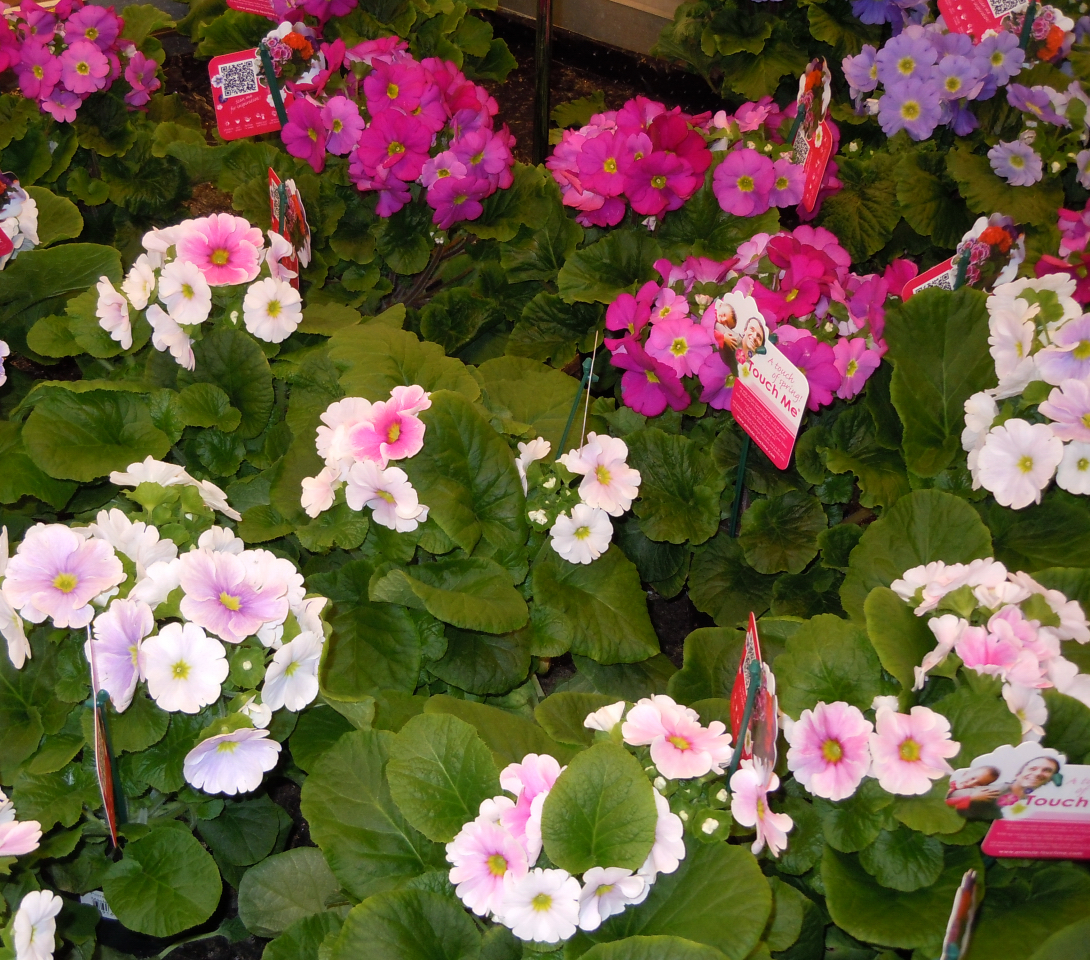 Primula, fönsterviva hette en växt som förr alltid fanns tidigt i affärerna på våren, den kunde man få utslag av och jag lärde mig tidigt att hålla undan för den. Den har, trots att det är känt att den kan ge allergi, aldrig upphört att bjudas ut och jag förstår av etiketten i krukan: TOUCH ME, att man satsat på en sort som inte har de förrädiska flimmerhåren som ger allergi. Den lyser upp i många färgvarianter från vit över rosa till lila.