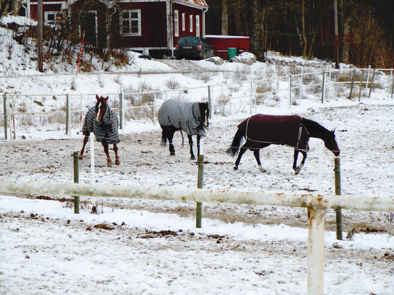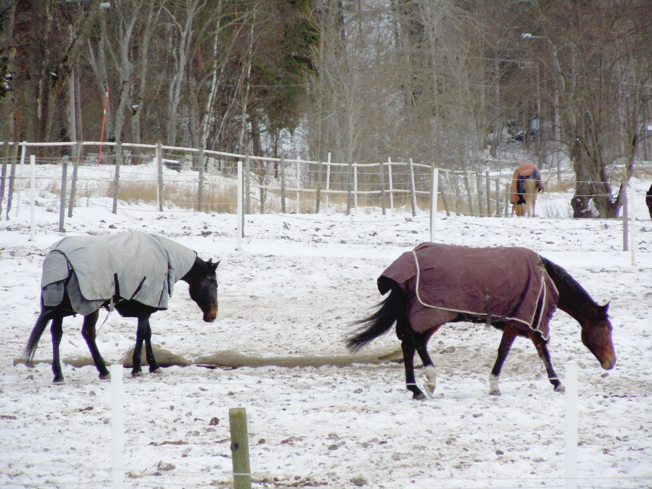 Ja kommunen är redan igång med att gräva ner rör och ledningar för vatten och avlopp och det myllrade av folk i gula västar kring dumprar och grävmaskiner. Stannade upp vid ridskolan, tre hästar släntrade kring lite håglöst i lera ihoptrampat med snö.