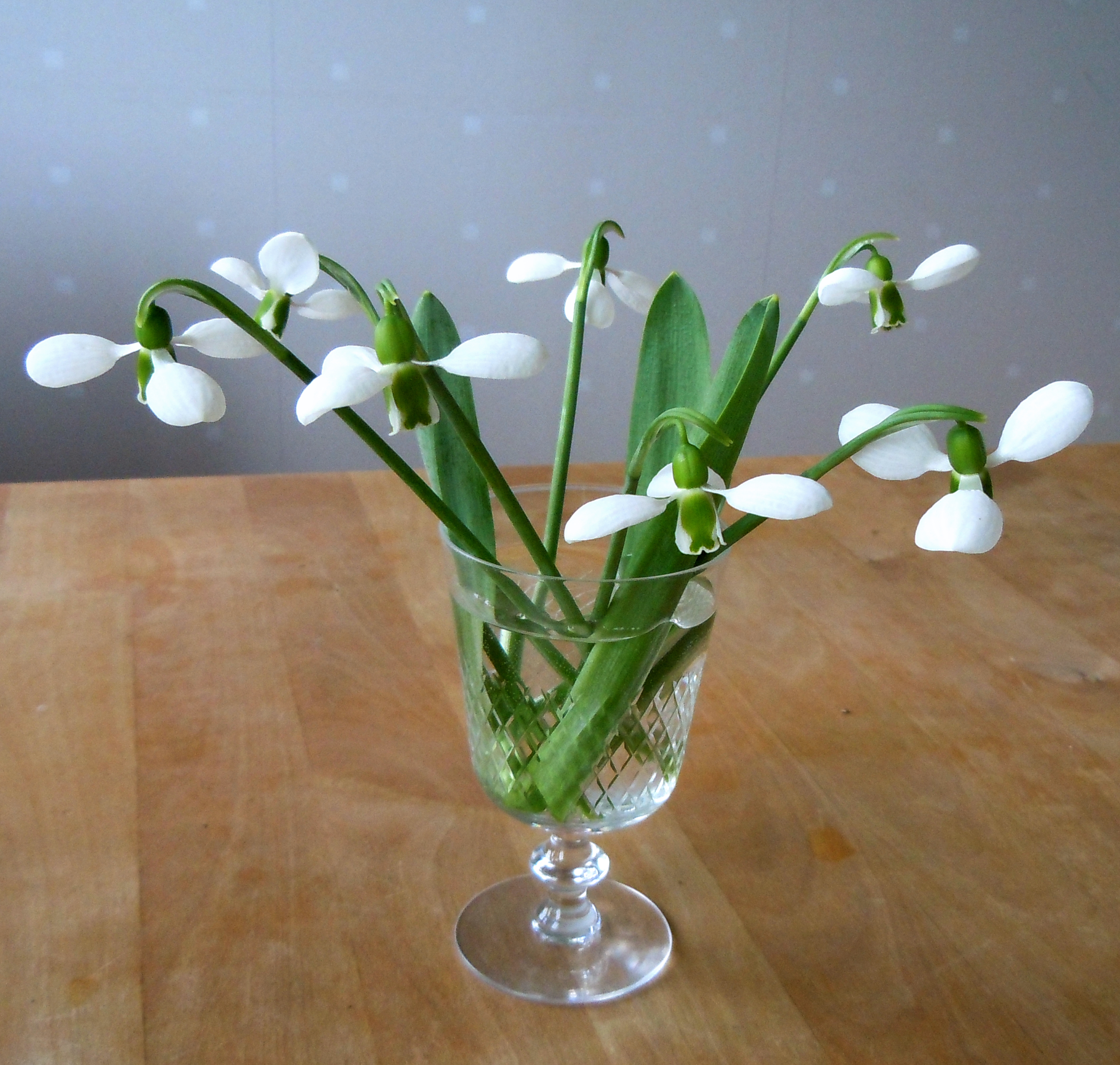 Snödroppar är är växter som trotsar både snö och kyla och som tittar upp när man minst anar det på nya året. De här fick vi igår av Monica och Tollef och de är de största, vitaste, och mest flygande jag någonsin sett.