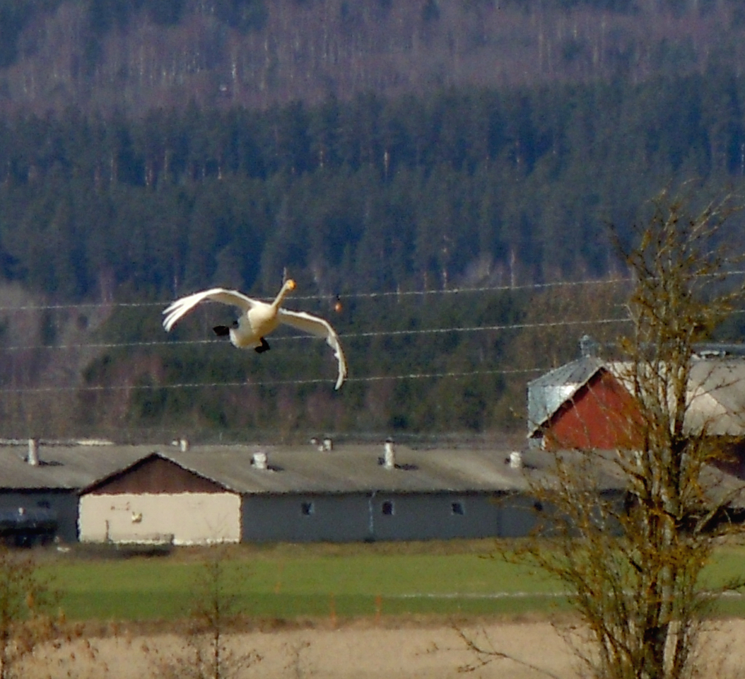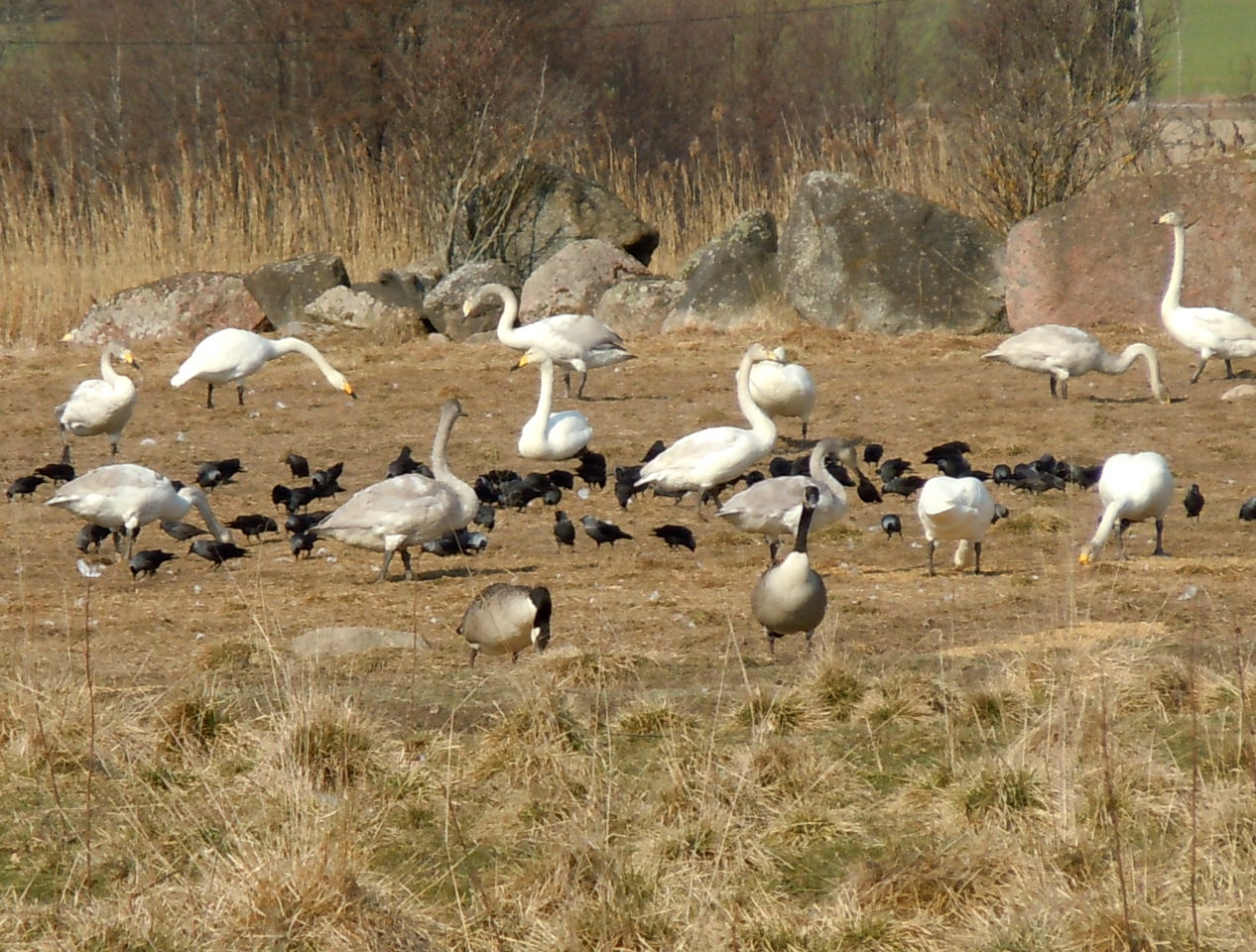Alla de här fåglarna såg vi inte, däremot ett par tranor som seglade runt runt utan att gå ner medan vi var där och några kanadagäss i utkanten av svanmängden .