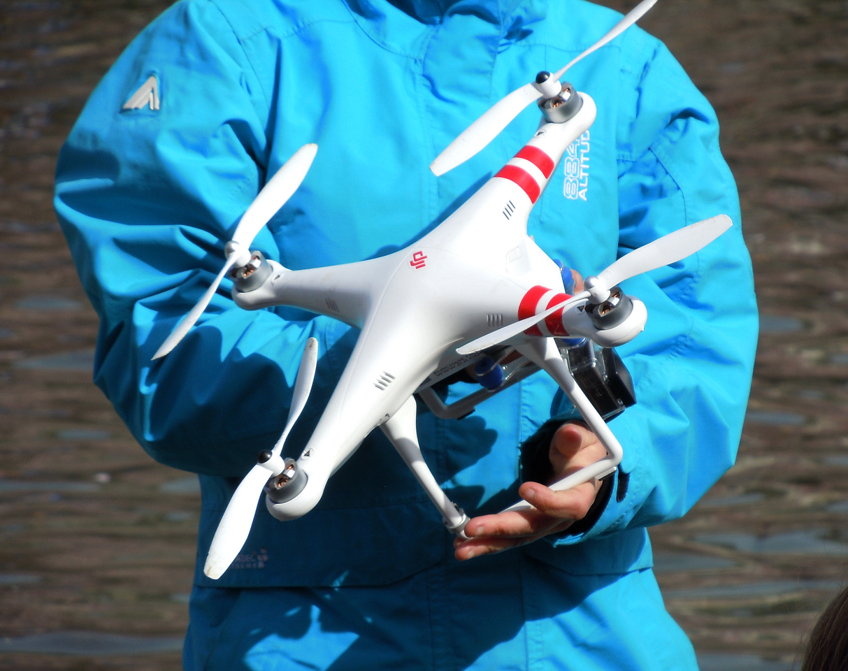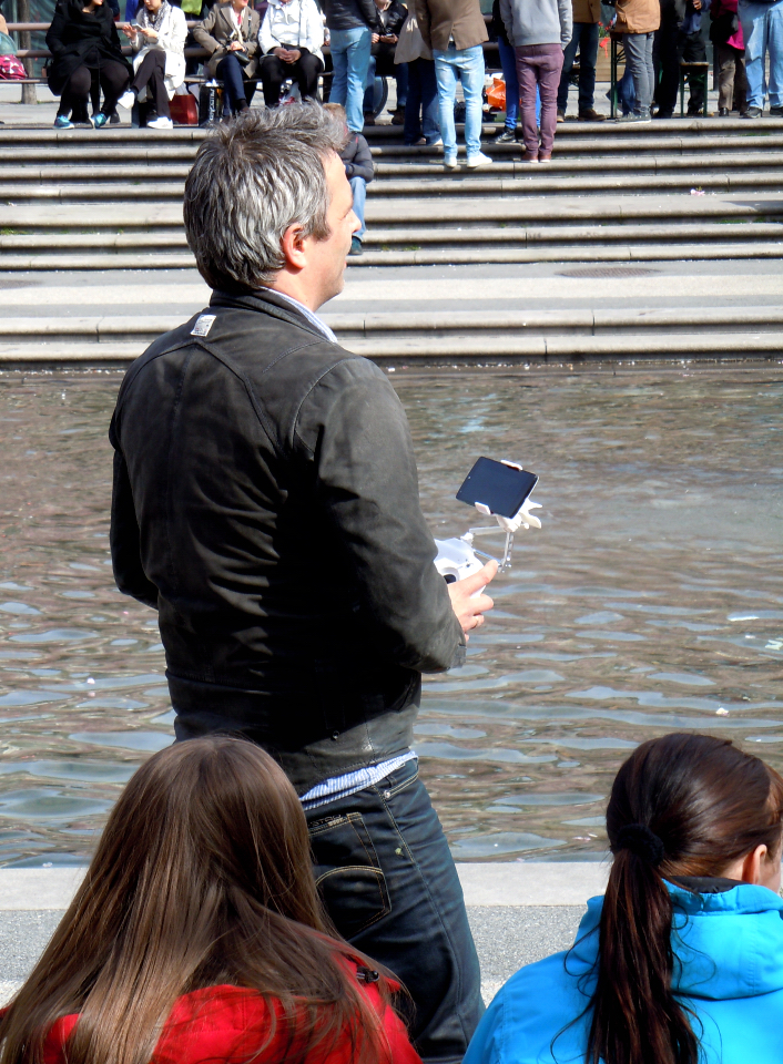 Det händer mera vid kanten av dammen och bland alla kameror ser en ovanlig ut. Det är inte en kamera utan en fjärrstyrning för något i luften – men var och vad?