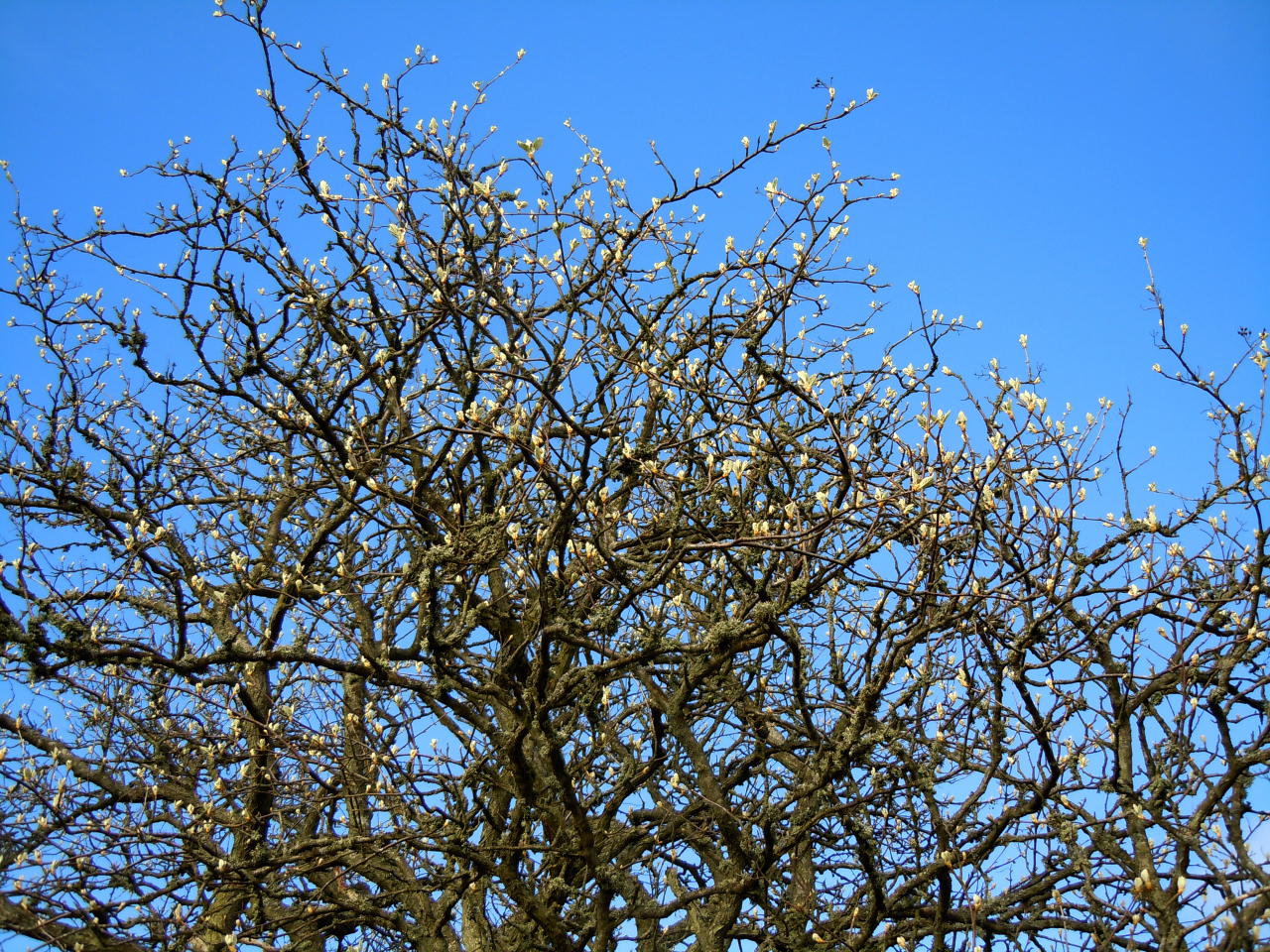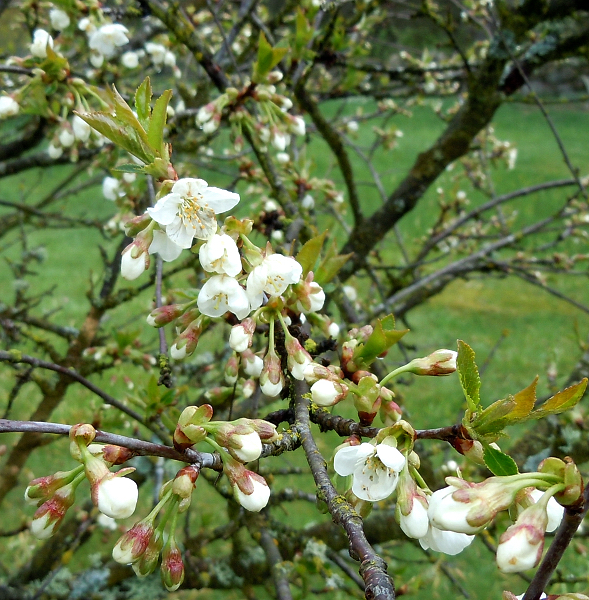 Vi väntar ännu på körsbärsblommen, regnet gör kanske att att både den och grönskan tar fart. Den gamla oxeln tänker slå ut i år med och till och med blomma.