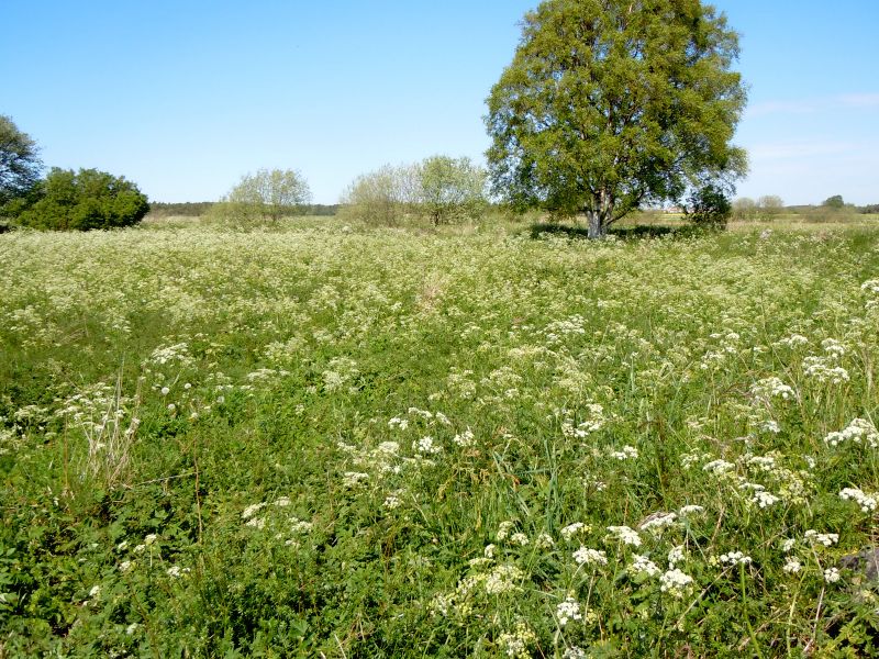 Fornborgen ingång krGetapeln slår ut kr Hela området är just nu vitt av hundloka och stenarna syns inte mycket, nässlorna är på väg och sen är det älggräs som kommer att täcka botten i borgen. Det är en vacker ring och hela platsen är gripande, man ser fritt åt alla håll och en gång då det var träsk runt om, hade man ett skydd här inne. Om det nu var för att gömma sig själv eller att rädda in traktens boskap undan plundrande fiender. Diametern på ringen är 55 meter, jag har inte mätt, det ser mer ut. En stensatt väg har funnits ut hit men den har ingen arkeolog nappat på så den är undanplöjd.
