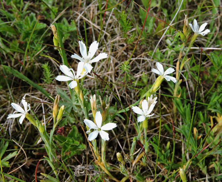 Då jag gick över fältet en dag lyste några vita små i en grupp, det var de som i floran nämns som ”kronblad stundom vita”. De var nya för mej och då  jag försökte fotografera bar de sig åt som nattglimen, de reflekterade ljus så att ingen bild blev skarp utan fick ett dimmigt ludd kring kronbladen.
