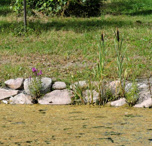 Den vackra första dammen, som tillsammans med andra dammen har utsökt form och stensättningar som man blir lyrisk av, har bruna ytor och är på god väg att redan växa igen.