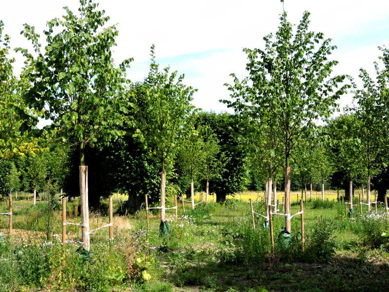 De nya lindarna, vi fick höra av en man som också var ute och kollade att träden planterades i höstas.