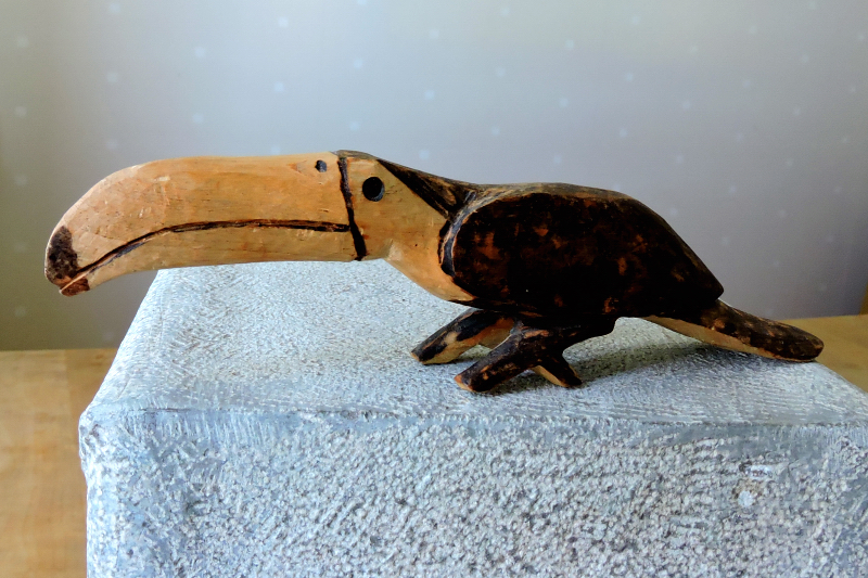En alligator och en tukan från Buenos Aires, också täljda i trä är Lasses minnen från mötet med en kusin till Aimée, då han deltog i ett ISO-möte i Argentina. Jag vet vad han berättade då han kom hem från resan men då jag idag vill höra det igen säger han sig ha glömt. Min idé om souvenirer håller inte alltid.