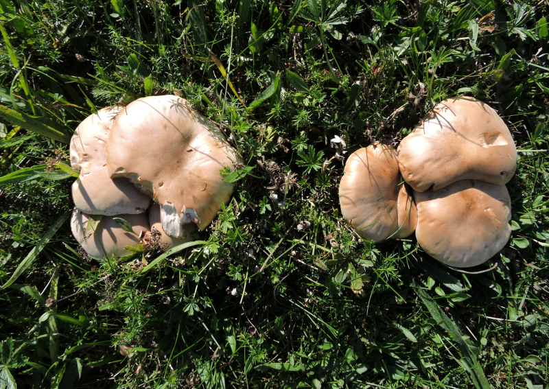 Efter alla regn blir det liv i gräset, svampar visar sej både sådana man känner igen och andra. Vi har fått mängder av något jag vill tro är ängsmusseroner och någon har bitit smakbitar av dem och gått vidare. Vems tänder är det? Betten är c:a 6 mm breda och är väl från två framtänder, men de är tandade. Är det harens tänder eller har vi ett rådjur i buskarna? Vem det än är så smakar den på olika saker och struntar sen i att äta upp, avbitna blomknoppar ligger bredvid skaftstumparna.