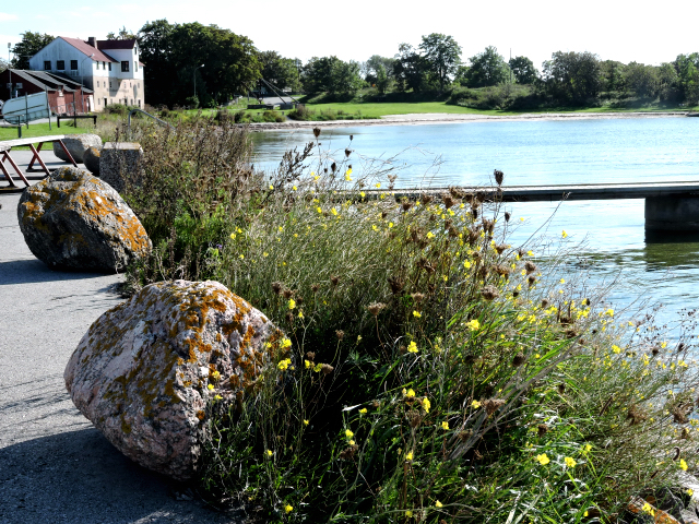 Havsbastun i Burgsvik krOm man vänder sej om ser man att badviken saknar badande, hamnmagasinet är städat men stängt, där har det varit aktiviteter under sommaren, något alla längtat efter.
