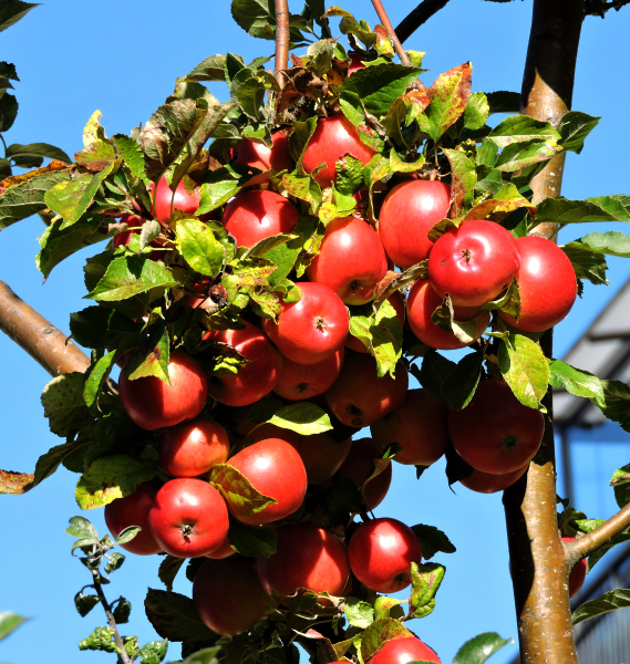Äpplena på gårdens äppelträd har fått färg, de glöder.