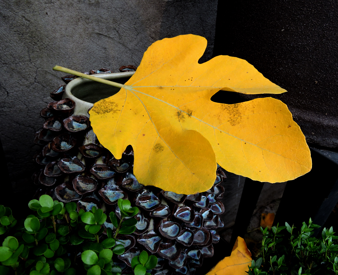 Från fikonträdet förstås, höst även här, alla bladen ska ner.