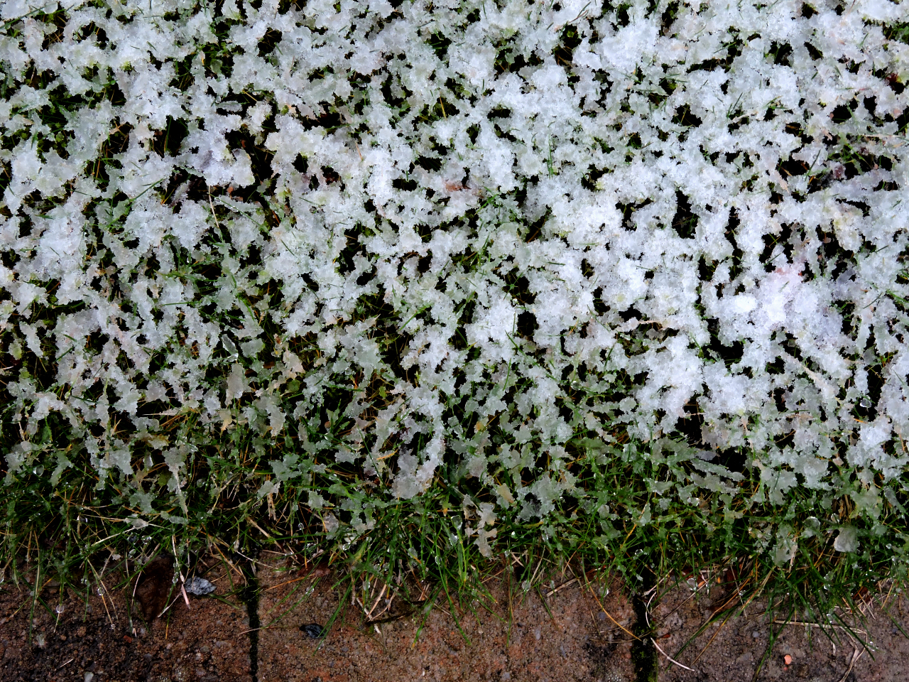 NovembersnöVägen till soptunnan går utmed en gräsmatta, den är nu gråvit och snön vet inte riktigt vilket tillstånd den ska välja, fast eller flytande.