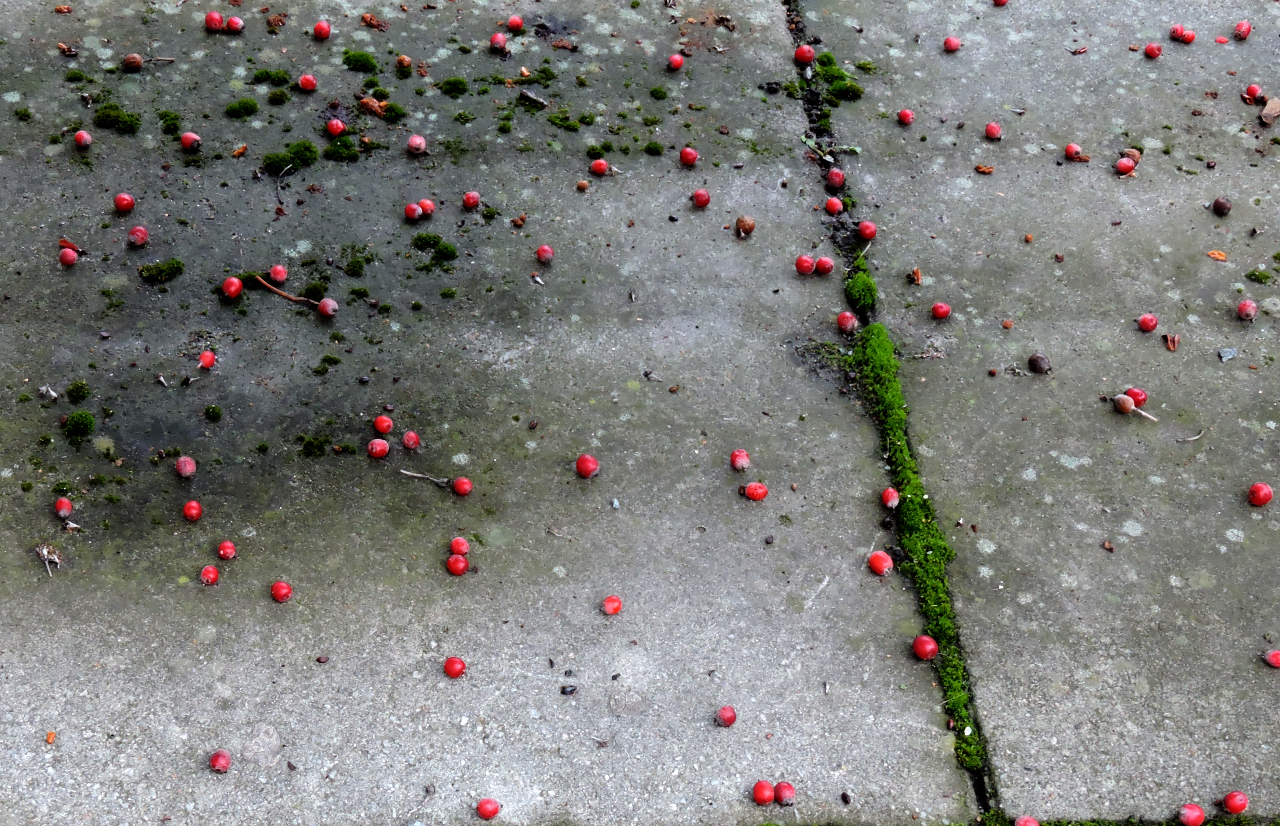 Nu har de rensat träden från bär men de har ätit slarvigt.