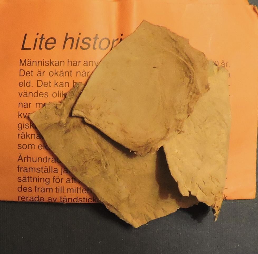 färdigt fnöske och en beskrivning av hur man tillverkar det av björkticka,