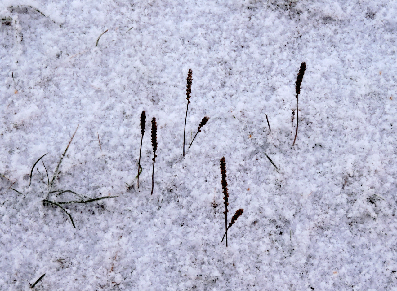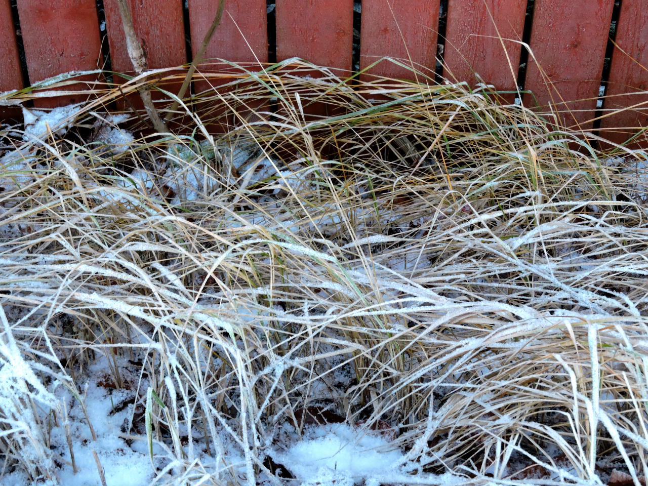 Till och med gräset utmed trottoaren är intressantare med lite snö.