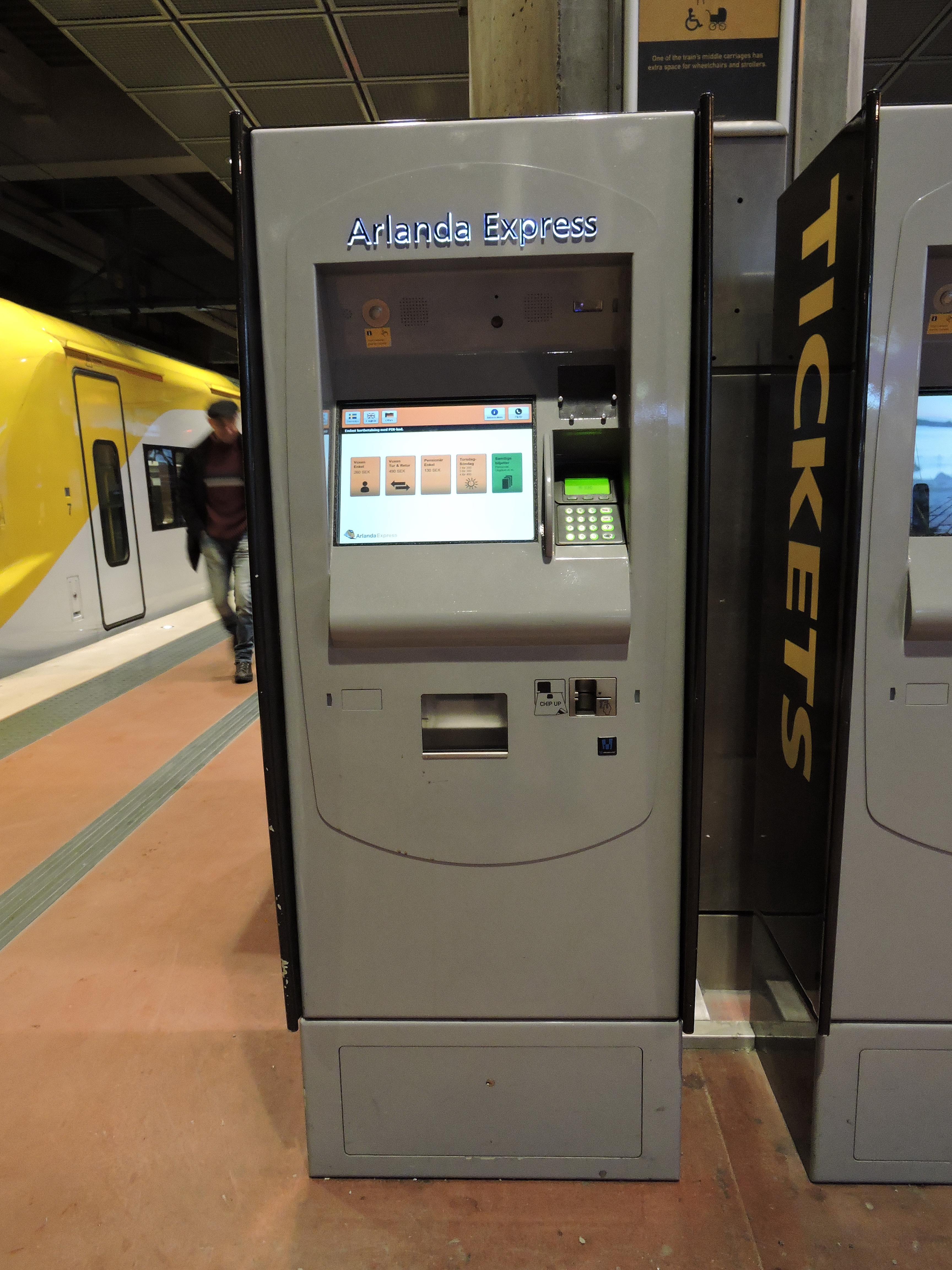 Det här är en biljettautomat på perrongen.