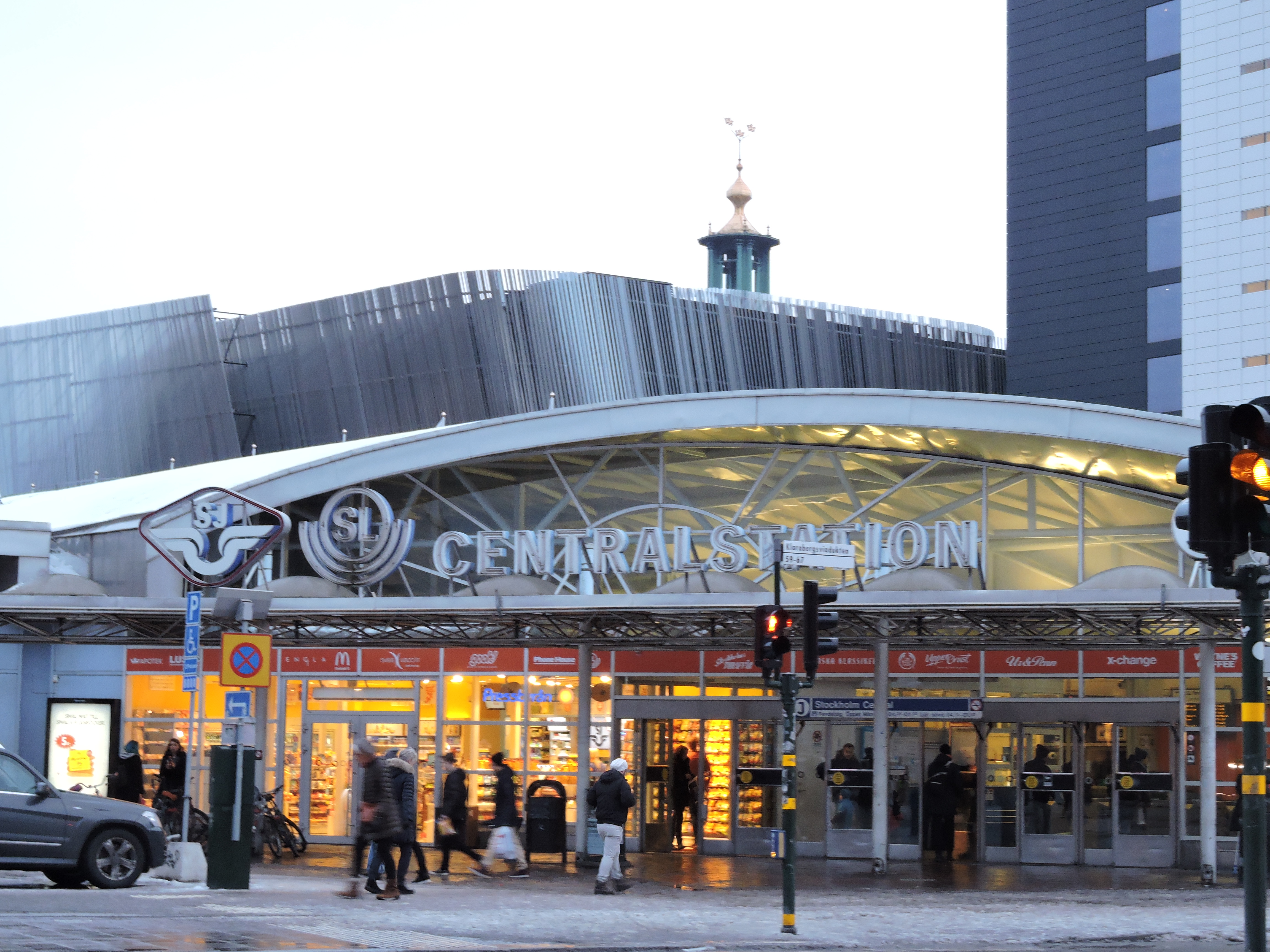 Jag avstod från att åka själv, kollade om nedgången var synlig och det var den. Nästa ställe var ankomsten till Centralen och där blev det en lång vandring, där det gällde att sikta rakt fram och inte frestas att avvika och gå ut på stan.