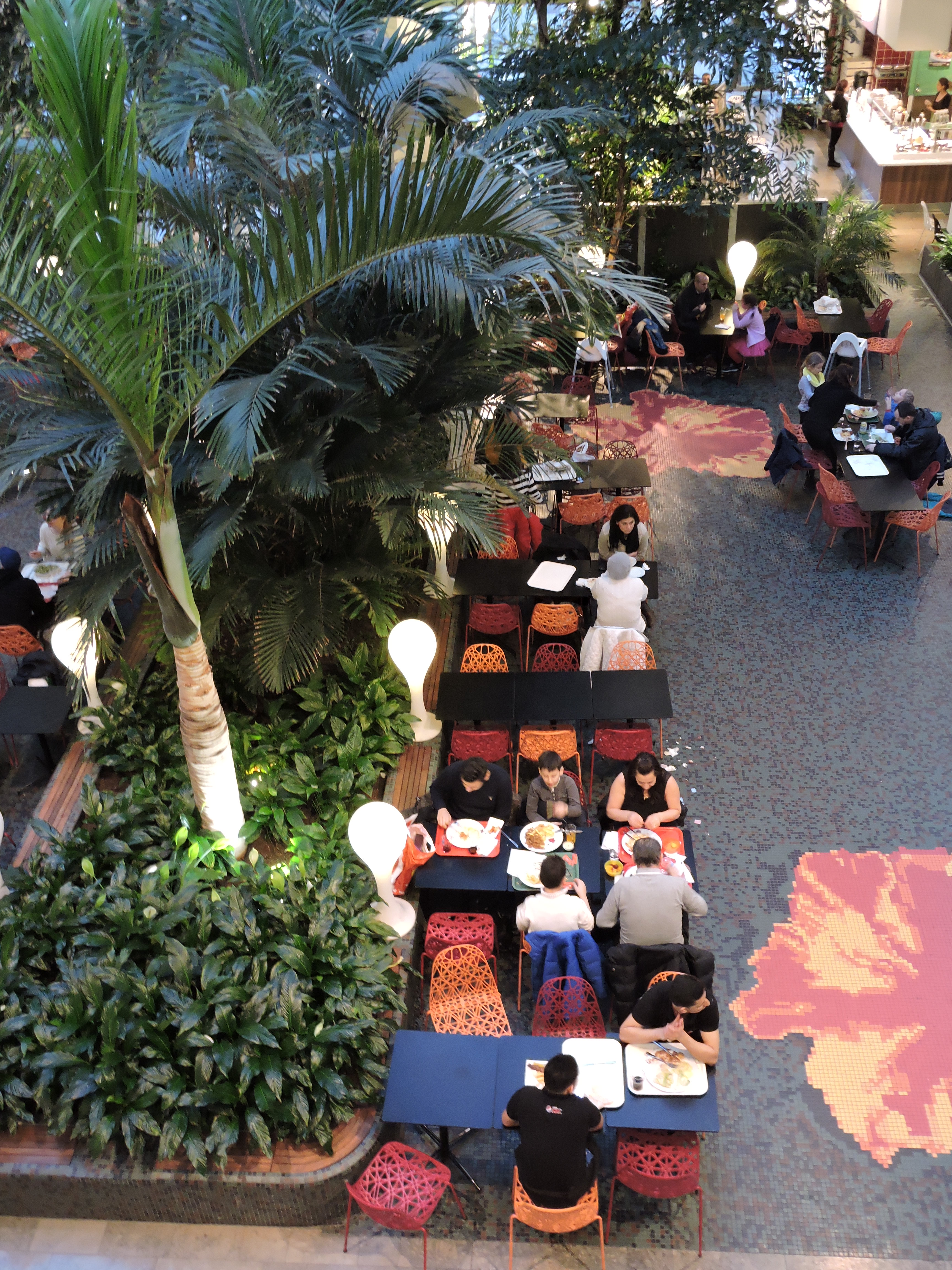 Fortsätter varvet runt och hamnar bland palmerna och där finns något som kommer från taket och ger oss känslan av vildmark, ett vattenfall, kan man få ut mer av ett besök i ett köptempel?